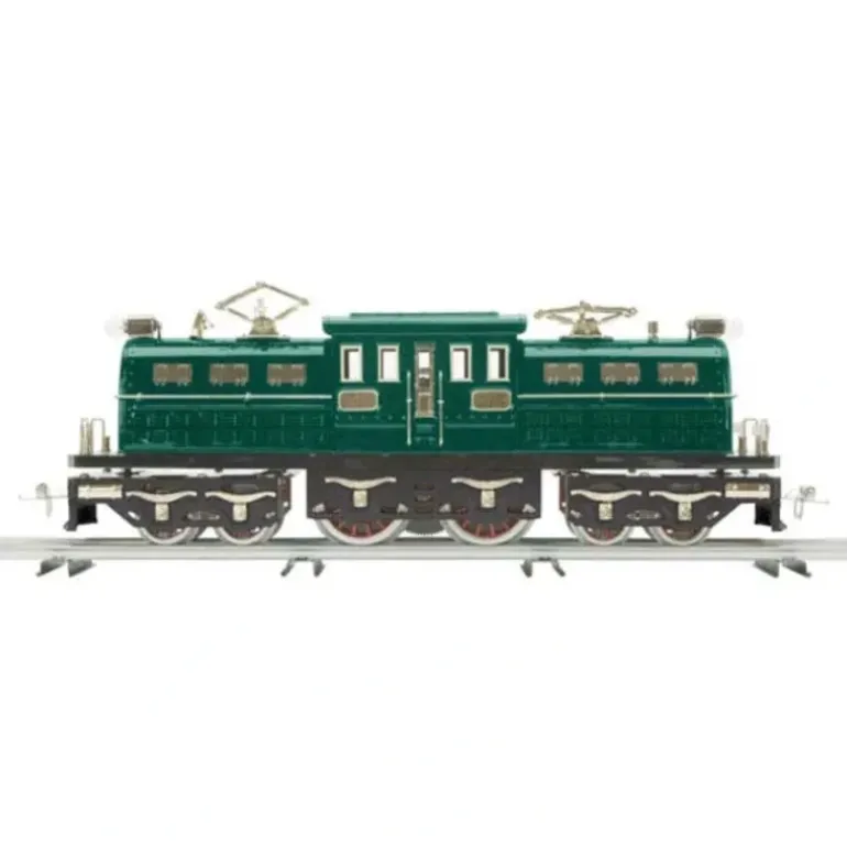 The Ives version turned out to be one of the last products designed by Ives and bearing the famous brass nameplate Made in the Ives Shops. The so-called short hood 3245R (R for remote reversing) came on the market in 1928, just as Lionel and American Flyer were taking over their bankrupt rival. The more impressive long hood version was cataloged in 1929 and 1930, the last years of production at Ives’ own factory, and this version returns to the Tinplate Traditions lineup for 2007. A product of the so-called transition years for Ives, the original 3245R came with Lionel pantographs and Lionel flag holders on its pilots, and was sold with cars borrowed from the firm’s new owners. In 1929 the Ives engine was trailed by American Flyer cars with Ives nameplates, trucks, and couplers. Around 1930, when Lionel became the sole owner of Ives, the long hood 3245R came with Lionel passenger cars sold as the Ives 240 series, with Ives decals and a unique black and orange paint scheme to match the engine. This version features a can motor and all the operating features of Proto-Sound 2.0.