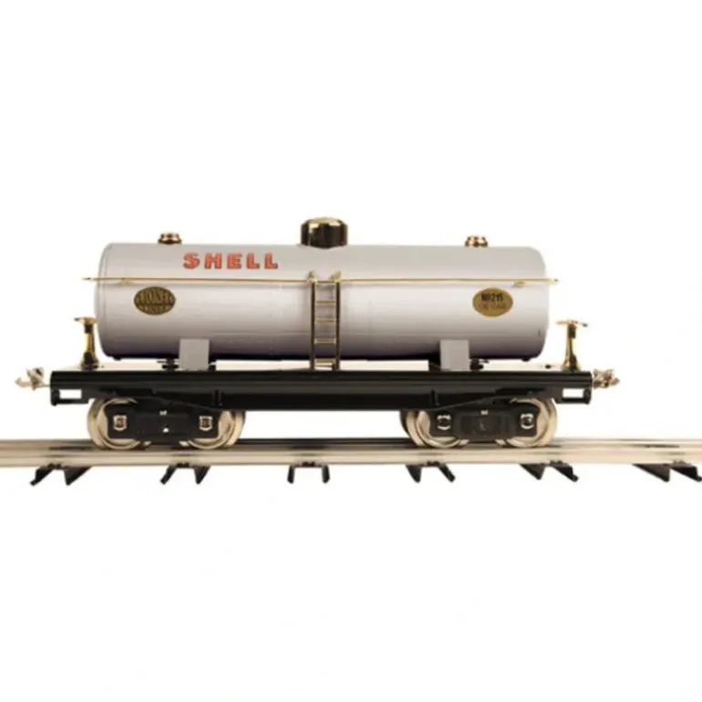 This is made by MTH and is part of the new “Lionel Corporation Tinplate” Line. This item comes with features like Stamped Steel Body and Chassis , Metal Wheels and Axles , Operating Metal Latch Couplers , Baked Enamel Finish , Colorful, Attractive Paint Schemes, Nickel Trim, Unit Measures:14 3/4 x 3 3/4 x 5 3/4, and Operates On STD-42 Curves.