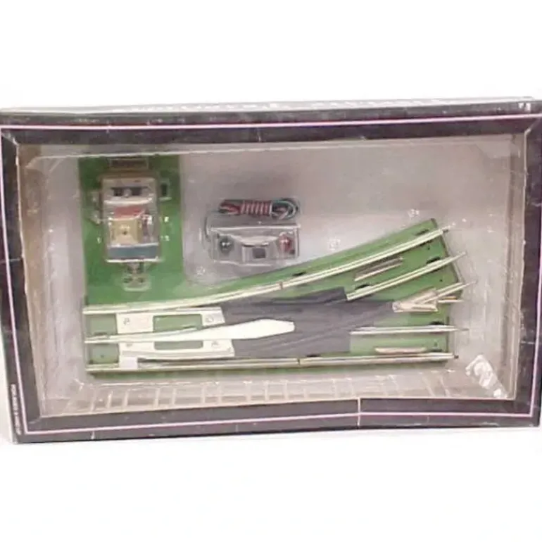This is a Lionel by MTH 11-99075 Standard Gauge Wide Radius Left Hand 72 Inch Diameter Switch with a Green Base. It features stamped metal construction, state of the art switch motor design, a remote switch controller, operating switch block lantern light, and is compatible with all standard gauge track.