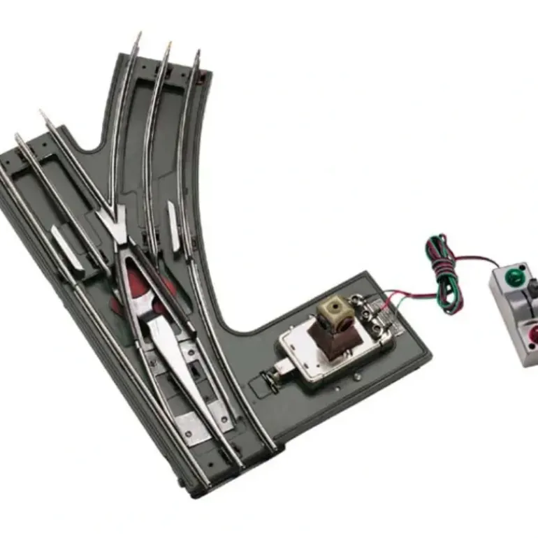 This is made by MTH and is part of the new Lionel Corporation Tinplate Line. The features of this item are Stamped Metal Constructio, State-of-the-Art Switch Motor Desig, Remote Switch Controlle, Operating Switch Block Lantern Ligh, Compatible With All Standard Gauge Trac, Unit Measures