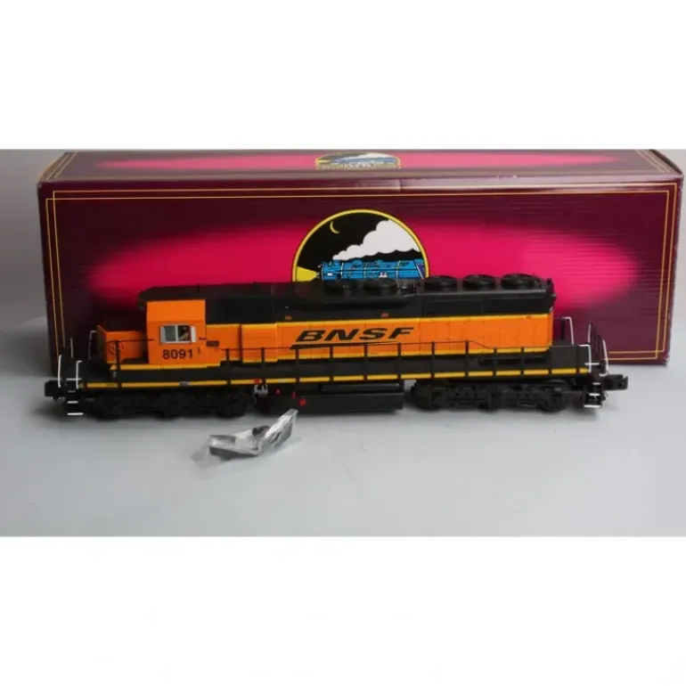 Here is an MTH 20-20023-3 BNSF SD40-2 Diesel Engine (Dummy). It features metal wheels and axles, an authentic paint scheme, metal handrails and a decorative horn, two engineer cab figures, metal body side grilles, and operating knuckle couplers.