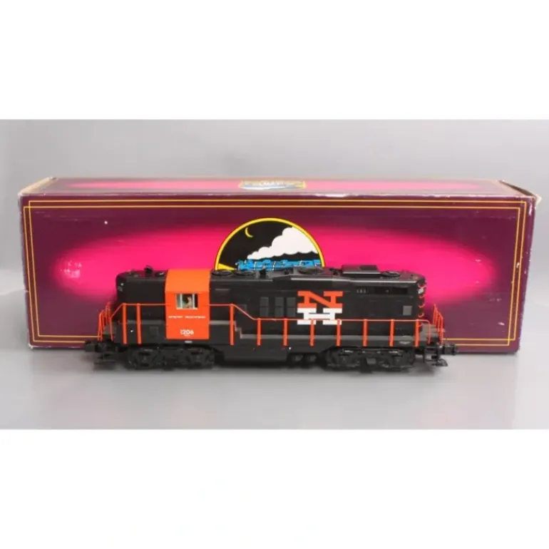 Here is a MTH 20-20033-1 O Gauge New Haven GP-9 Diesel Engine #1206 w/ProtoSound 2.0. Features include a motor, cab figures, die cast truck sides, operating knuckle couplers, detailed ABS body, metal wheels, and metal axles. Please see my pictures for additional features.