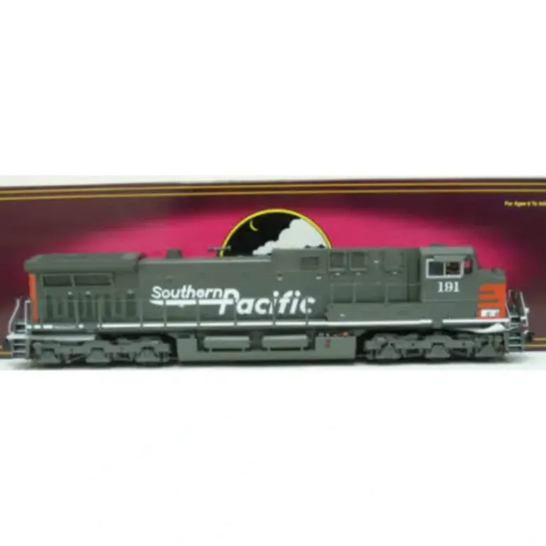 This is an MTH 20-2631-1 Southern Pacific AC4400cw Diesel Locomotive from 2006. From the dawn of dieselization through its first six decades, virtually every American diesel locomotive used DC traction motors. By the early 1990s, however, a series of technological advances allowed designers to tap the inherent superiority of AC traction – namely, the ability of an AC motor to start a heavier load than a DC motor, with the same prime mover. The superior adhesion of AC power touched off a new horsepower race because, with the same number of wheels, AC traction could put more horsepower on the rails. Two years behind rival EMD, General Electric entered the AC traction business in June 1993 with the AC4400CW – 4400 horsepower, “C” for 3-axle trucks, and “W” for wide North American cab. The new engine was basically an AC version of the Dash 9-44CW introduced the same year. The key external difference between the two engines is the large box behind the cab on the left side of the AC 4400CW, which houses much of the AC traction electronics. Although General Electric’s AC power arrived on the scene later, its AC engines have outsold those made by EMD. One reason may be GE’s use of one inverter bank per traction motor, a design that allows the crew to cut out a single malfunctioning motor and still retain more than 80% of a locomotive’s function. On a comparable EMD AC-powered engine, an entire truck has to be taken offline if one of its three motors fails. One area of weakness for GE was its high adhesion trucks, which were generally acknowledged to be inferior to EMD’s steerable radial truck. Later model AC4400CWs feature GE’s own version of a steerable truck, which improves adhesion on curves. Now you can bring the brute strength of the AC4400CW to your own freight operations. New to the M.T.H. lineup, this model offers the industry-leading features you expect in a Premier diesel: awesome sounds, superb detailing, see-through body grilles, a wealth of added-on details, and smooth operation at any throttle setting from a crawl to high-speed mainline service. Please see my photos for a full list of all the features of this item.