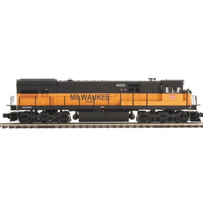Here is an MTH 20-2846-2 Milwaukee Road GE U30C Diesel Engine w/ProtoSound 2.0(Scale Wheels). This locomotive features two remotely controlled ProtoCouplers, a metal chassis, illuminated number boards, two precision flywheel equipped motors, an intricately detailed ABS body, directionally controlled headlights, die-cast trucksides, die-cast pilots, die-cast fuel tank, an authentic paint scheme, metal handrails, decorative horn, lighted cab interior, two engineer cab figures, metal body side grilles, operating smoke unit, metal wheels, metal axles, metal gears, locomotive speed control in scale MPH increments, ProtoSound 2.0 with the Digital Command System featuring Freight Yard ProtoEffects and it operates on O-42 curves.