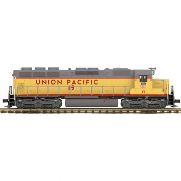 Here is an MTH 20-2915-1 Union Pacific SD45 Low Hood Diesel Engine w/Proto-Sound 2.0 (Hi-Rail Wheels). Features: Intricately Detailed ABS Body Die-Cast Truck Sides, Pilots and Fuel Tank Colorful Paint Scheme Metal Chassis Metal Handrails and Decorative Horn Moveable Roof Fan Blades Metal Body Side Grilles Constant Voltage Headlight Metal Wheels and Axles (2) Operating Metal Couplers (2) Engineer Cab Figures Unit Measures:17 1/4 x 3 3/4 x 2 3/4 Operates On O-42 Curves