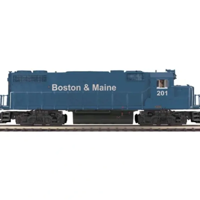 Here is an MTH 20-2951-3 Boston & Maine GP38-2 Diesel Engine (Non-Powered). It features metal wheels and axles, an authentic paint scheme, metal handrails and a decorative horn, two engineer cab figures, metal body side grilles, and operating knuckle couplers.