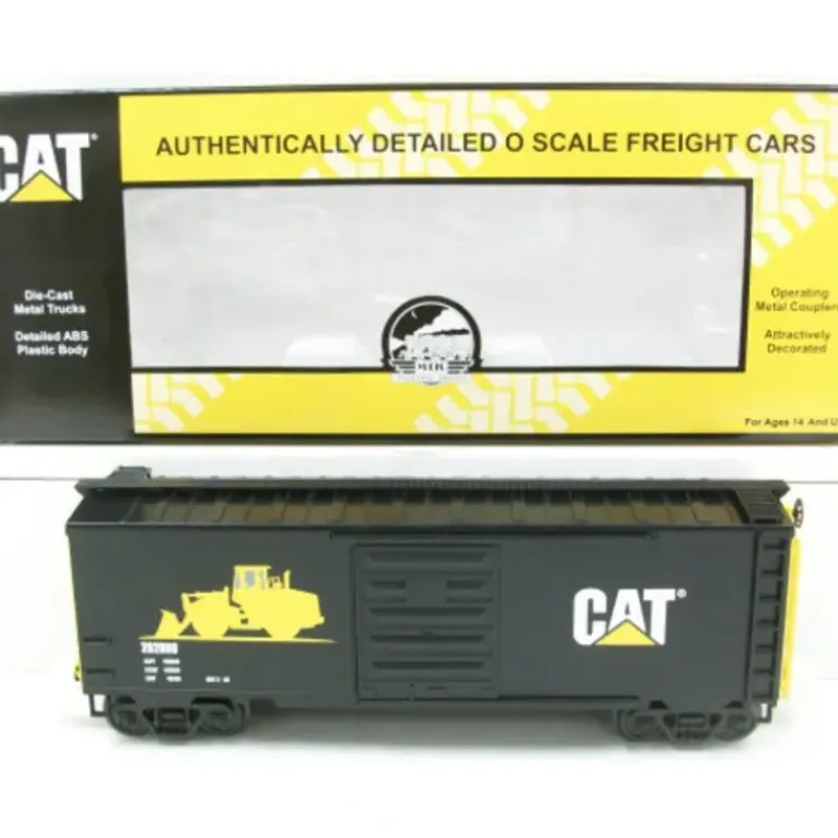 Here is an MTH 20-93449 Caterpillar 40′ Boxcar. This car features die-cast metal sprung trucks, die-cast metal operating knuckle couplers, and metal wheels and axles.