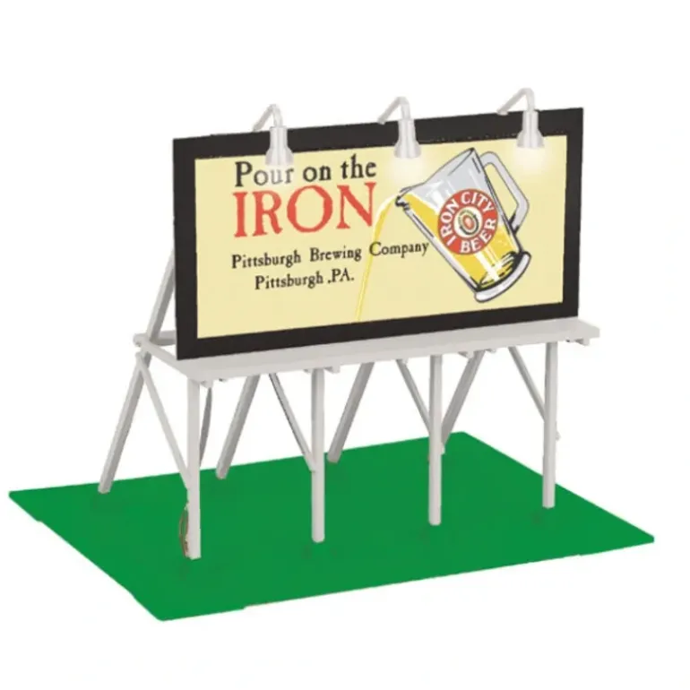 Here is a MTH 30-90286 Pittsburgh Brewing Co. Lighted Billboard. Features include Intricately Detailed ABS Construction Fully Assembled Operating Lights Self-Standing Or Mountable Unit Measures:7 1/2 x 5 3/4 x 6