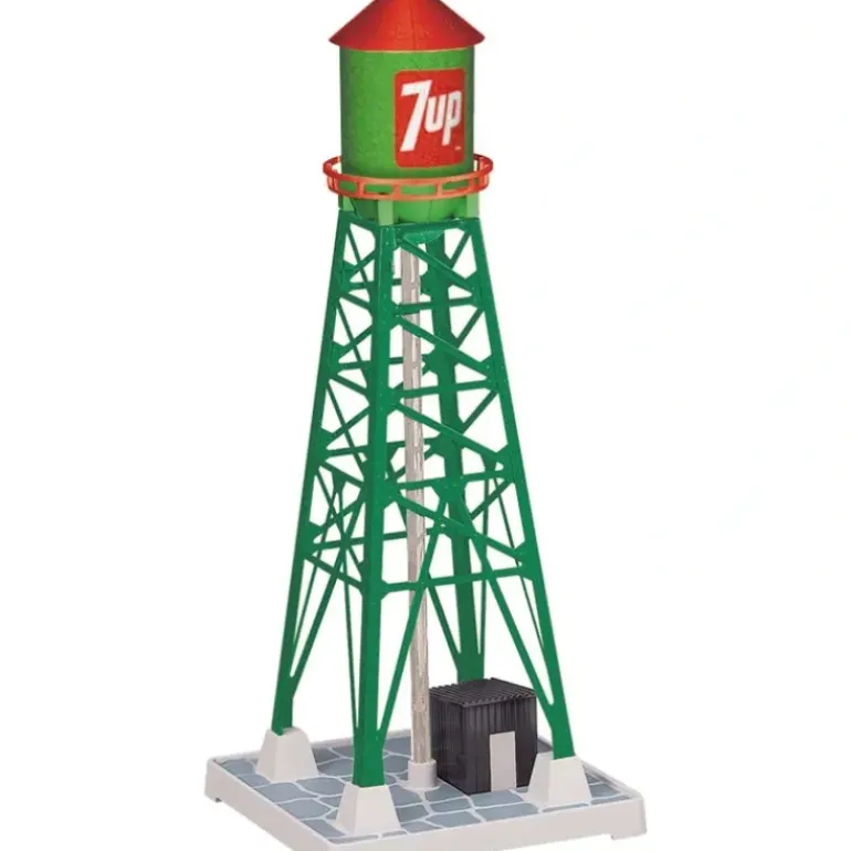 Here is a MTH 30-90290 7UP #193 Industrial Water Tower. This industrial water tower features: Stamped Metal Construction Intricately Detailed ABS Construction Fully Assembled Fully Painted Flashing Beacon Light Unit Measures:6 x 6 x 14 3/4