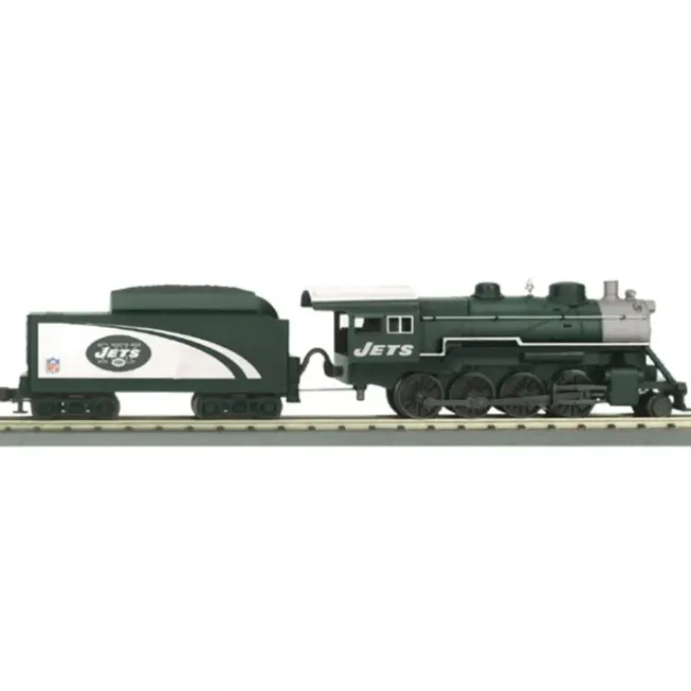 This is an MTH 33-1023-1 New York Jets 2-8-0 Steam Engine w/Proto-Soundr 2.0. This colorful O-27 steam locomotive brings the rugged excitement of the NFL to model railroading for a unique and interactive family activity sure to spark memories of great NFL action. The powerful die-cast metal 2-8-0 Consolidation locomotive sports one of four famous NFL team colors and feels as strong in your hands as it runs on the track. Equipped with all-metal gears, wheels and axles ensures a lifetime of fun and the unique sounds of Proto-Sound 2.0 simply amaze friends and family. Imagine their faces when the whistle is activated but sounds the shrill of a referee’s whistle, or when the bell is triggered resulting in the introduction of the team. Even more impressive are our exclusive NFL Proto-Effects that play back classic radio play-by-play calls. Of course, seeing the synchronized puffing smoke from the locomotive as it pull whatever you put behind it is even more impressive and tells all who see it that this is one great locomotive. Features include Die-Cast Boiler and Chassis, Near Scale Sizing, ABS Detailed Tender Body, Die-Cast Metal Chassis, Colorful Paint Scheme, Metal Wheels and Axles, Constant Voltage Headlight, Precision Flywheel Equipped Motor, and Locomotive Speed Control.
