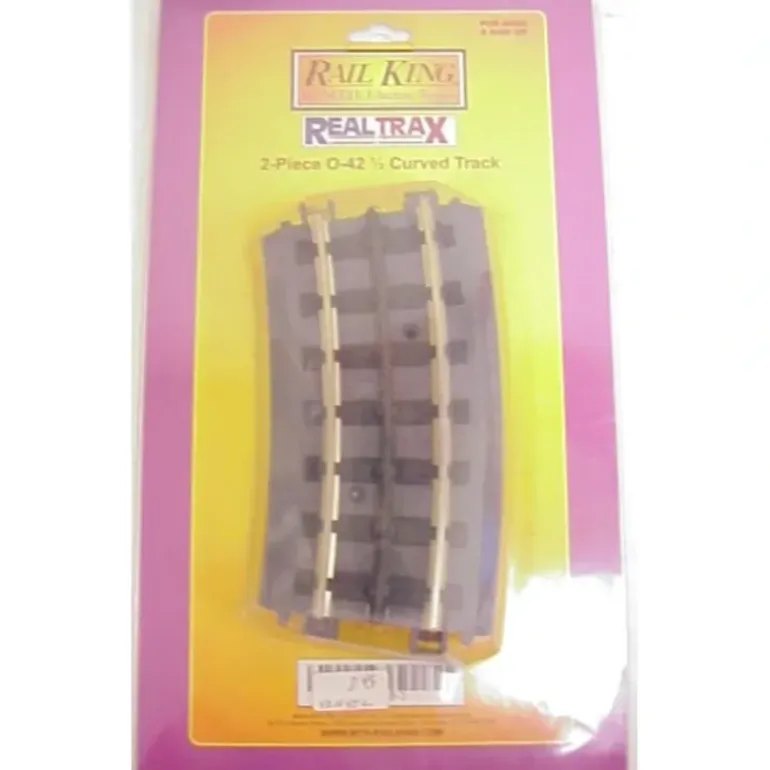This is a single package of MTH 40-1045-2 RealTrax O42 Curved Track. Realtrax is simply the easiest O Gauge track system ever manufactured. Featuring solid metal rails strong enough to stand on and a built-in roadbed for a realistic appearance ensures that a RealTrax layout will last for years while sporting a realistic appearance not found in other O Gauge track systems. RealTrax incorporates built-in track bed joiners and long-lasting sprung- metal electrical connectors that make assembling RealTrax literally a snap. Because the roadbed is solid, RealTrax is perfect for temporary carpet based layouts. The built-in roadbed prevents any dirt from staining your carpet and it comes apart so easily that your temporary layout can be disassembled in minutes. While the RealTrax system employs solid nickel-silver rails that won’t rust or oxidize in an outdoor environment, the plastic roadbed and rail ties are constructed of ABS plastic that can be compromised outdoors. Essentially, ABS plastic is not designed to withstand extreme temperature swings and can distort (in high heat) or crack in extreme cold. In addition, the plastic will tend to fade in color since it has not been treated with UV resistant paint. As a result, we do not recommend that RealTrax be used outdoors.