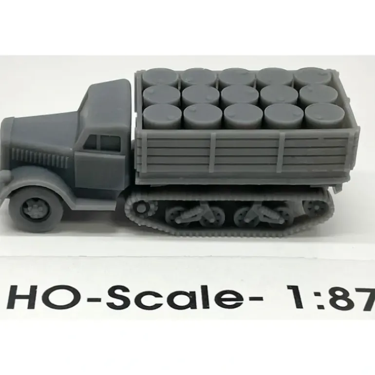 This is an Phoenix Precision Models 31045 HO Half-Track Truck with Drum Load. .