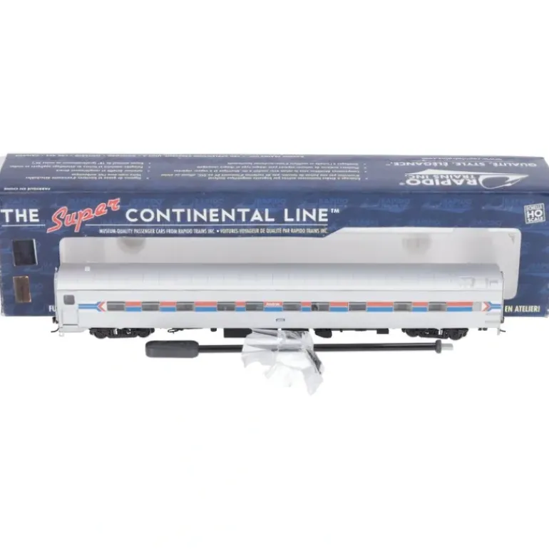 This is a Rapido Trains 104021 HO Scale Amtrak Super Continental Line(TM) 10-5 Sleeper Phase I #2802. Rapido Trains Super Continental Line HO streamlined passenger cars are welcome additions to many passenger consists. These detailed, ready-to-run models feature interiors, working diaphragms, factory-installed grab irons and battery-operated interior lighting and knuckle couplers.