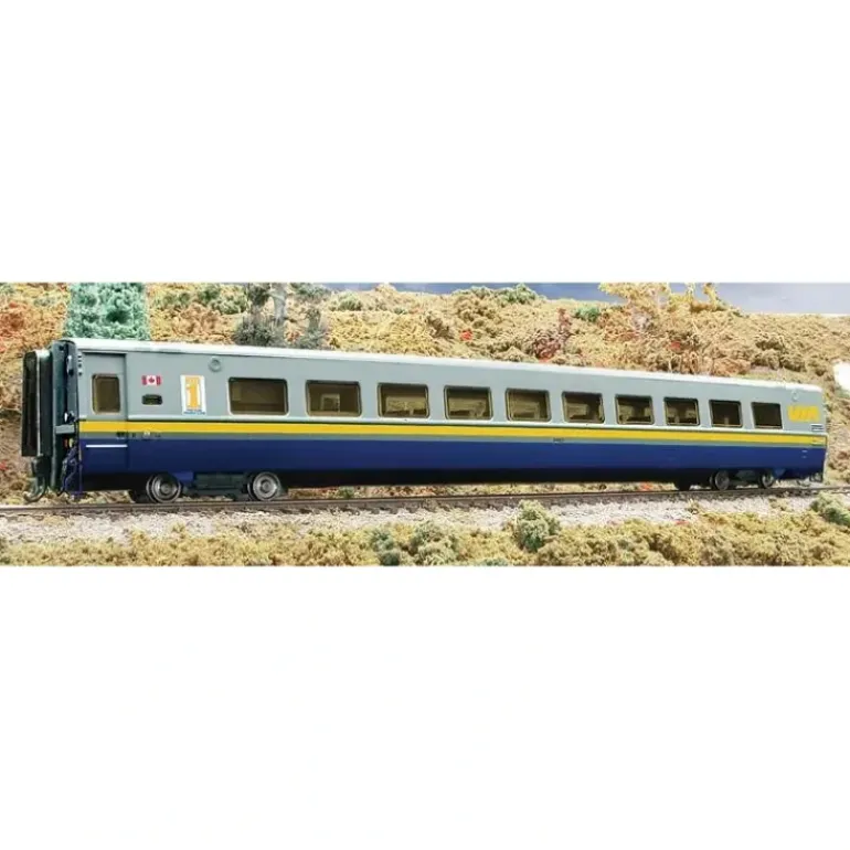 This is a Rapido Trains 107001 HO Scale VIA Super Continental Line(TM) LRC Club Car #3457. Includes interior lighting with magnetic wand, detailed underbody with separate piping and conduit, fully-detailed interiors.