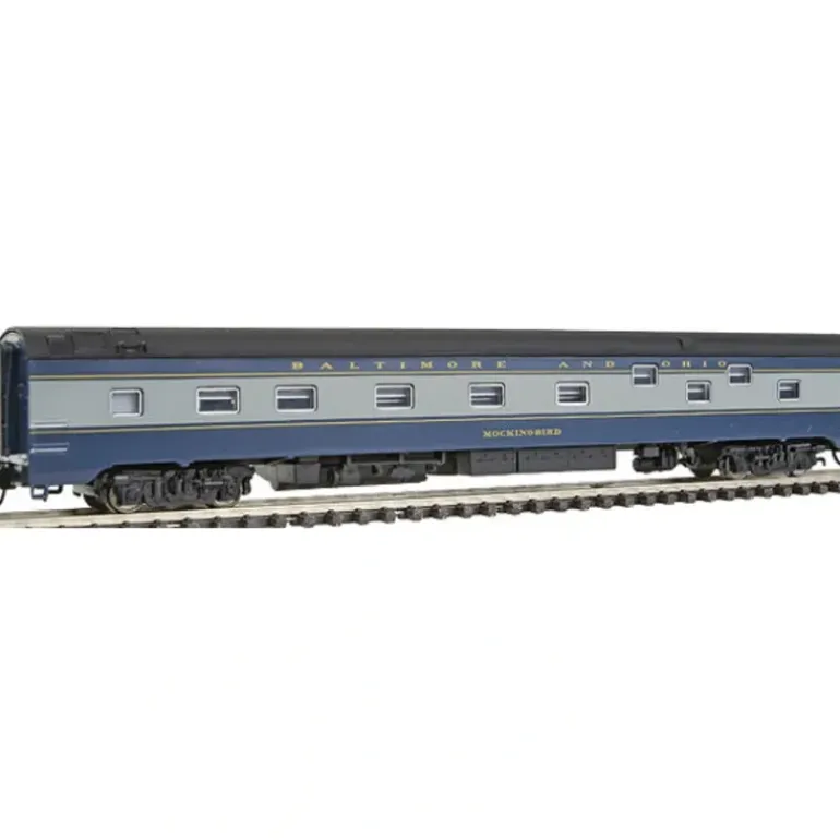 This is a Rapido Trains 501018 N Scale Baltimore & Ohio The Panorama Line(TM) Duplex Sleeper, Assembled, Lighted, MT Couplers Mockingbird.