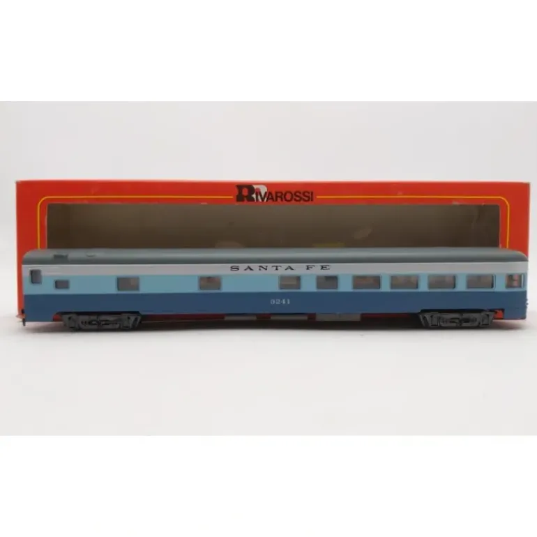 This is a Rivarossi 2635 HO Santa Fe Blue Goose Observation Car #3241.This car features plastic construction, plastic trucks, plastic couplers, & plastic wheels and axles.