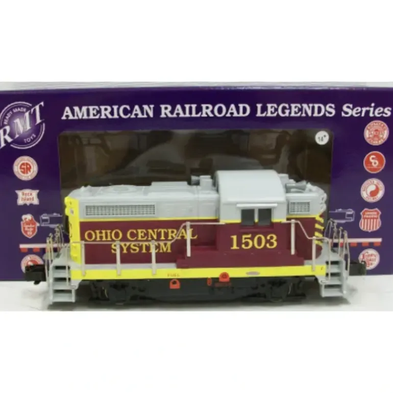 This is a RMT 4061 Ohio Central BEEP Powered Diesel Engine #1503. RMT Beeps are very popular amongst model train lovers. The BEEP is modeled after GEEPs (GP-9s),and condensed into a smaller baby-sized version of your traditional O gauge diesels. Dont let its size fool you, this engine has the pulling capacity of your standard O gauge engines. Features include dual can motors, an electronic 3-position forward-neutral-reverse unit, directional lighting, dual roller power pickups, operating metal knuckle couplers, metal railings, decorative horns and metal wheels. It is compatible with all Lionel, K-line, MTH, Atlas, Williams and Weaver electric trains and is perfect for use on all O and O-27 3-Rail model train layouts . It is 9.5 Inches long and operates on minimum O-27 curves.