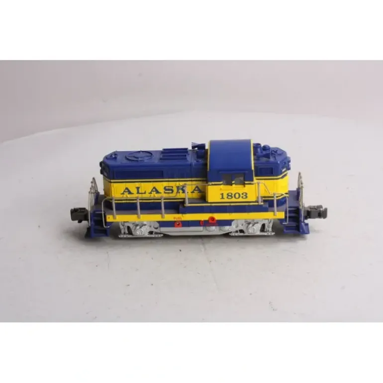 This is a RMT 4331 O Gauge Alaska BEEP Powered Diesel Locomotive #1803. RMT Beeps are very popular amongst model train lovers. The BEEP is modeled after GEEPs (GP-9s),and condensed into a smaller baby-sized version of your traditional O gauge diesels. Dont let its size fool you, this engine has the pulling capacity of your standard O gauge engines. Features include dual can motors, an electronic 3-position forward-neutral-reverse unit, directional lighting, dual roller power pickups, operating metal knuckle couplers, metal railings, decorative horns and metal wheels. It is compatible with all Lionel, K-line, MTH, Atlas, Williams and Weaver electric trains and is perfect for use on all O and O-27 3-Rail model train layouts . It is 9.5 Inches long and operates on minimum O-27 curves.