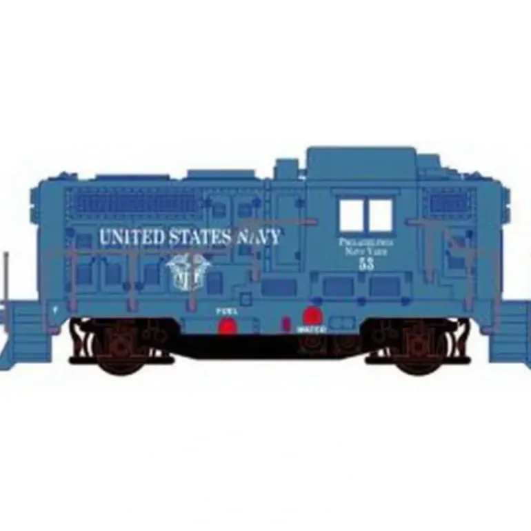 UNITED STATES NAVY Railway painting and lettering in the classic ‘toy train postwar’ blue and white paint scheme.
