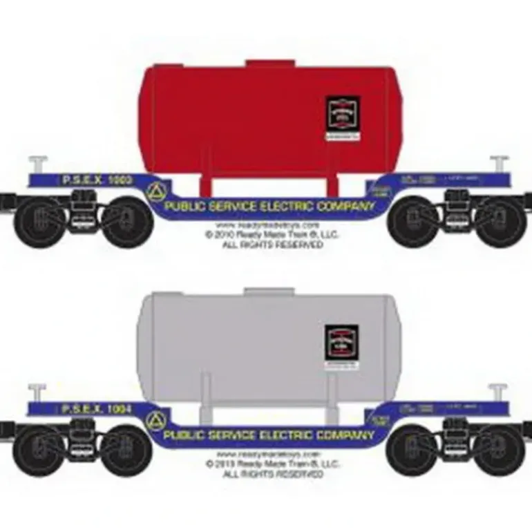 Here is a RMT 96508 O Dep.Ctr.Flat Car Public Service of NJ/2pk. This car features die-cast metal sprung trucks, operating knuckle couplers, metal wheels and axles. Includes Brake Man Figure.