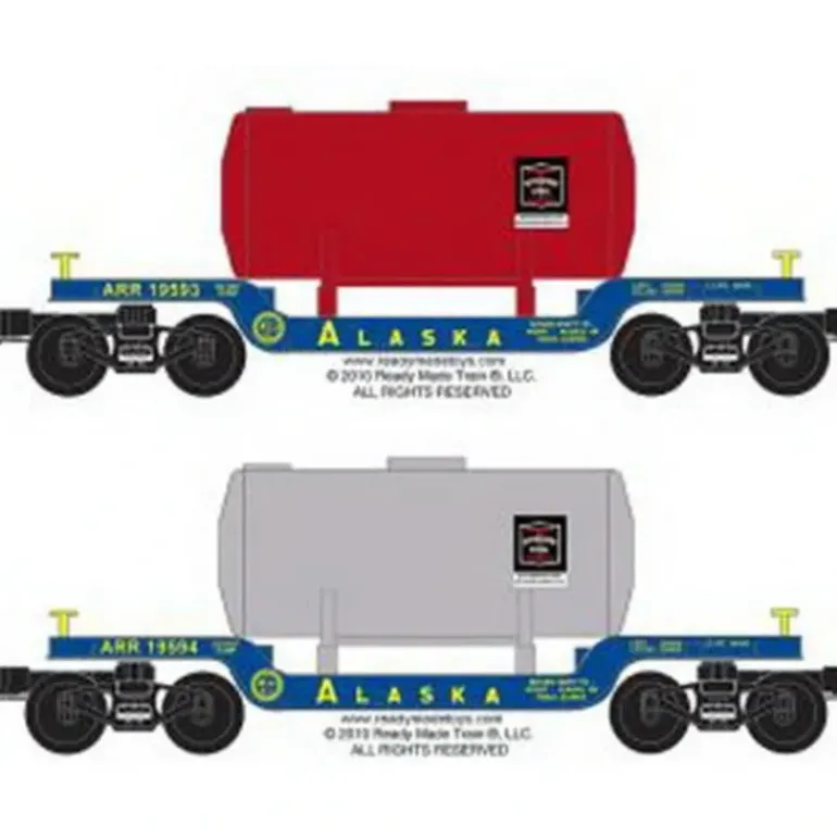 Each flatcar is painted in the distinctive ALASKA blue/yellow colors with yellow lettering.