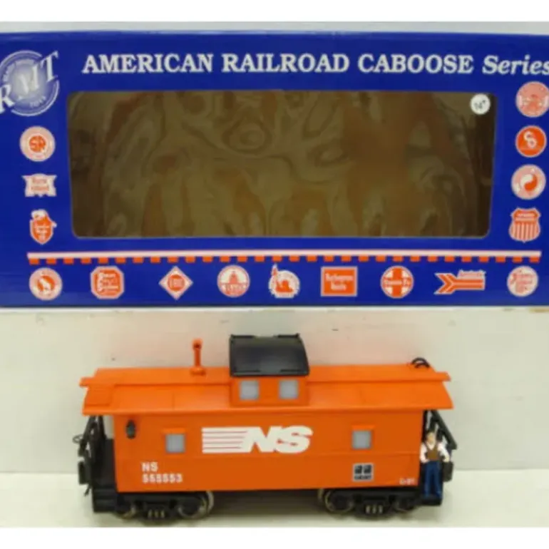 This is a RMT CAB 461 US Coast Guard Caboose #1915.This caboose features operating marker lights, interior lighting, die-cast metal sprung trucks with operating metal knuckle couplers, cab windows, metal hand rails and chains, a drop step and detailed metal chassis with multi-wheel electrical pickups, and a separate train conductor figure. This caboose is compatible with all O and O-27 gauge toy trains.