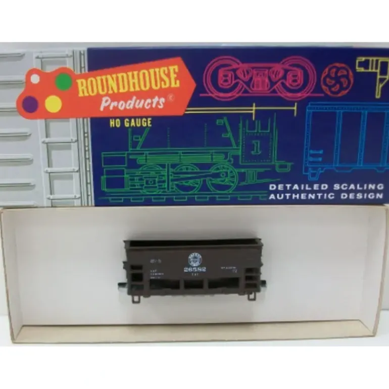 Here is a Roundhouse 1323 HO Duluth Missisippi & Iron Range 26′ Ore Car Kit. Features include a detailed plastic body.