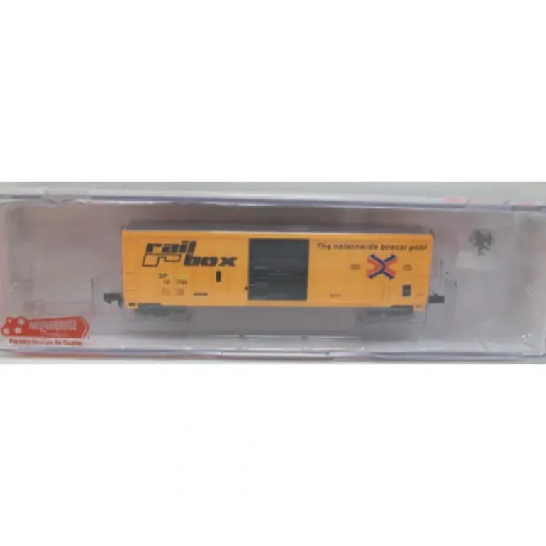 Here is a Roundhouse 82502 N Scale Re-Stenciled/Weathered Railbox 50′ FMC Boxcar #16707. This car features plastic construction, plastic wheels & knuckle couplers.