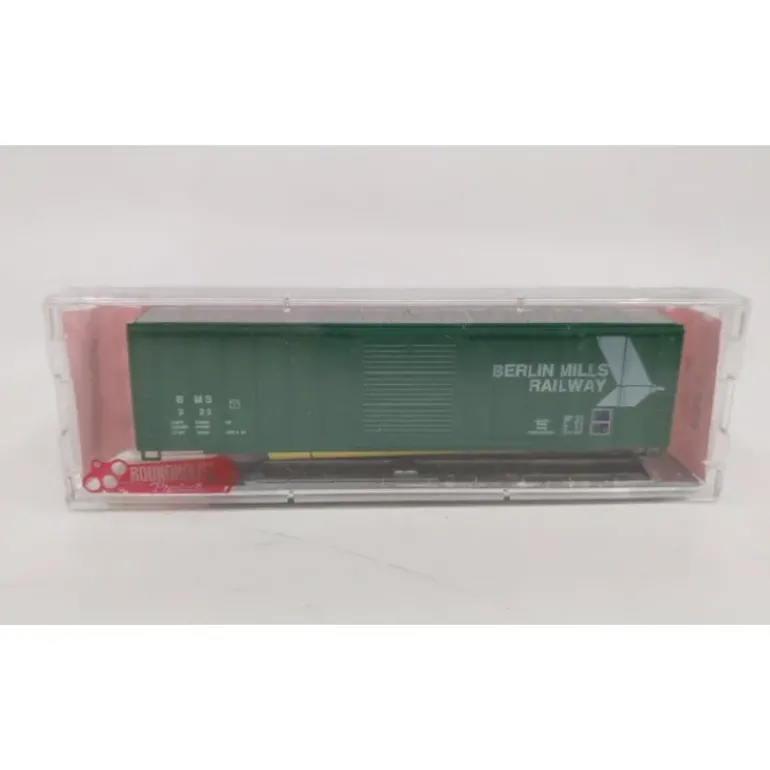 Here is a Roundhouse 8855 N Scale Berlin Mills Railway 50′ Boxcar Kit #223. This item comes disassembled with plastic construction.