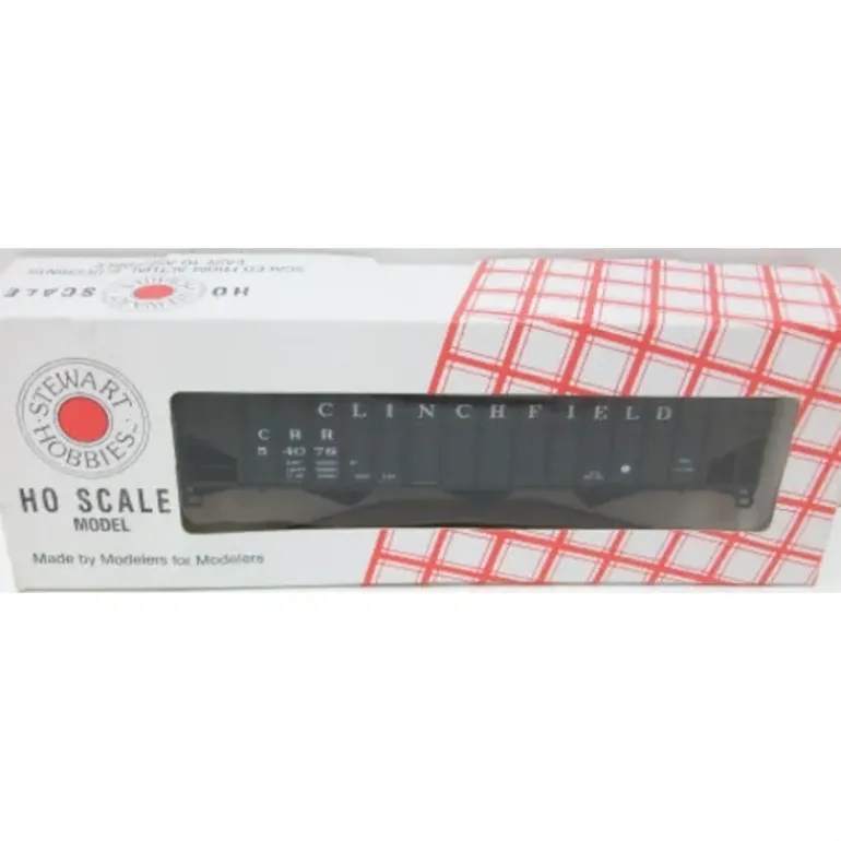 This is an Stewart 10048 HO Scale Clinchfield Hopper Car Kit #54078. These easy-to-build HO Scale plastic models feature one-piece, prepainted and lettered bodies. Kits include trucks and weights. Coupler pockets accept Kadee(R) couplers.