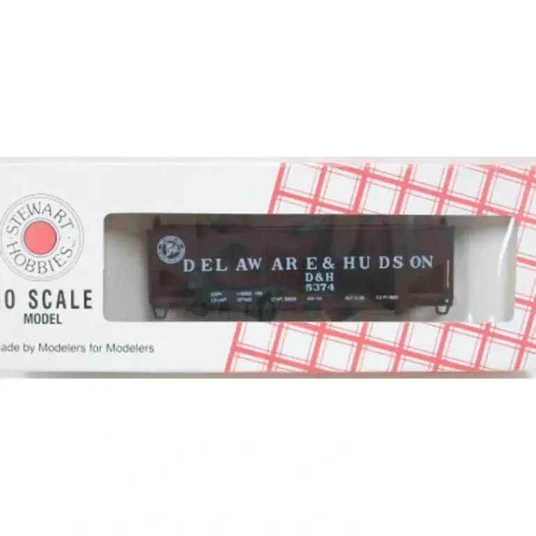 This is an Stewart 10114 HO Scale Delaware & Hudson 55 Ton 2 Bay Hopper Kit. These easy-to-build HO Scale plastic models feature one-piece, prepainted and lettered bodies. Kits include trucks and weights. Coupler pockets accept Kadee(R) couplers.