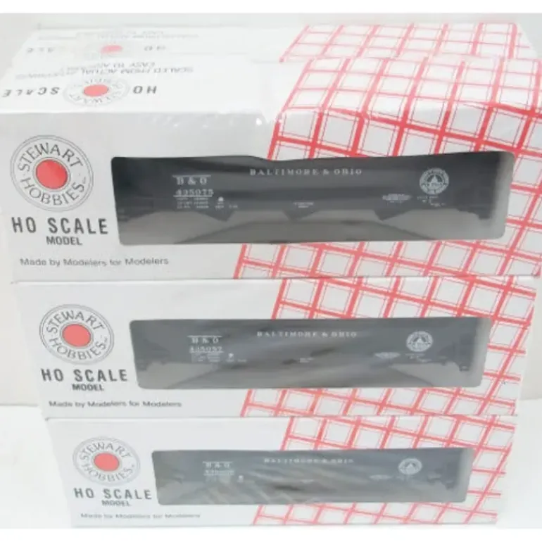 This is an Stewart 10302 HO Scale Baltimore & Ohio 3 Bay 70 Ton Hopper (6). These easy-to-build HO Scale plastic models feature one-piece, prepainted and lettered bodies. Kits include trucks and weights. Coupler pockets accept Kadee(R) couplers.