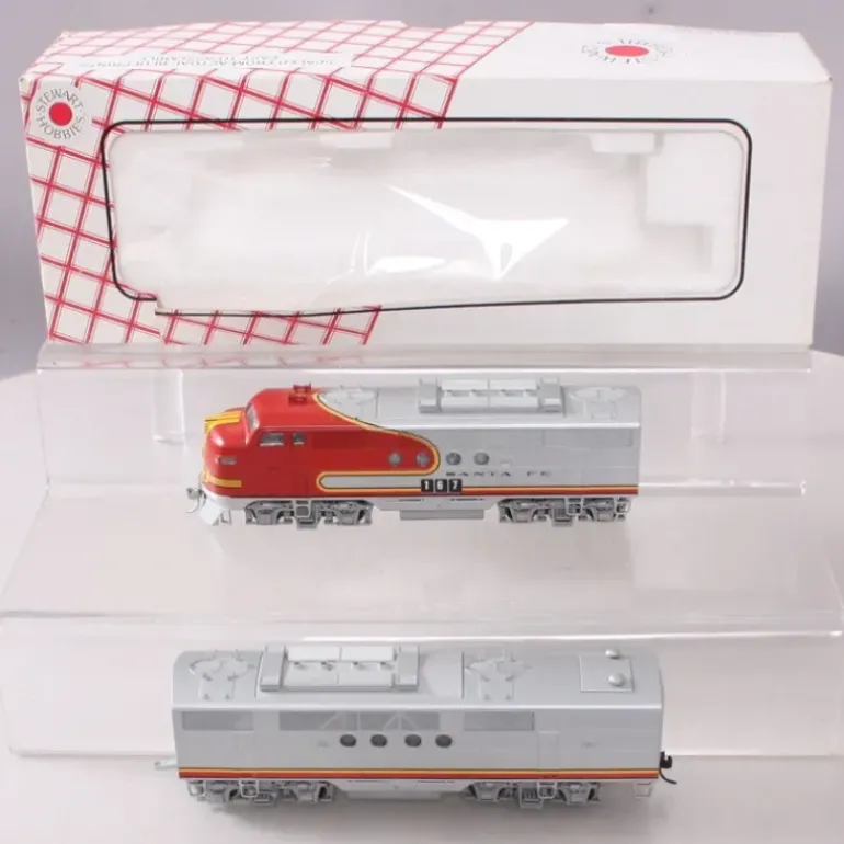 This is a Stewart 5029 HO Santa Fe EMD FT A/B Powered/Dummy Diesel Locomotive Set. Models feature detailed plastic bodies with Stewart Hobbies drive and trucks. The A Unit is powered.