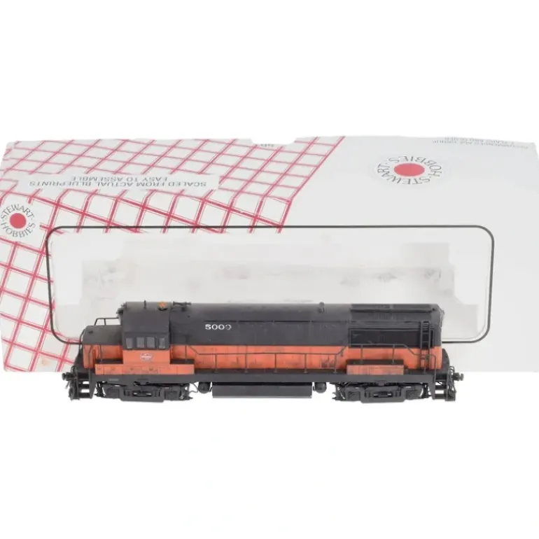 Here is a Weathered Stewart Hobbies 7404 Milwaukee Road GE U25B Phase IV #5000. It features intricately detailed plastic construction, metal wheels, attractive decoration, and a powerful motor.