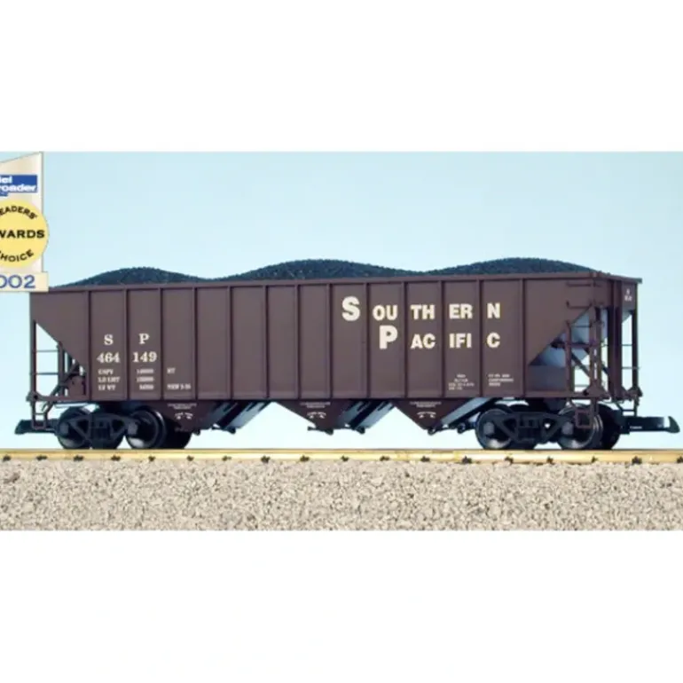 This is a USA Trains 14005 G Southern Pacific 70-Ton Hopper #464149. Each hopper features opening bottom hatches, detailed brake system, coal load and metal wheels. Cars are Kadee coupler-compatible.