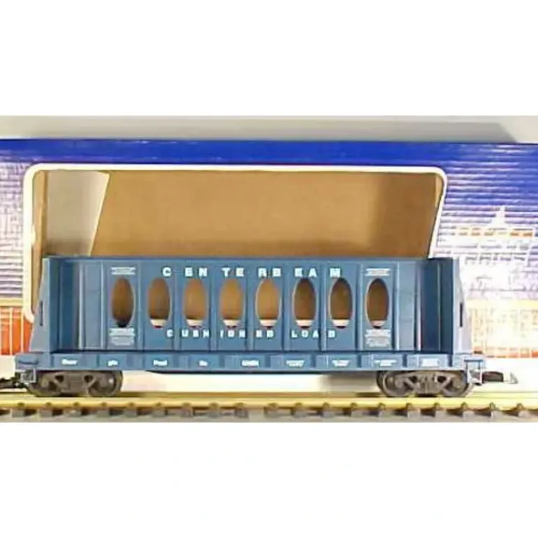 This is a USA Trains 17402 G Georgia Pacific Centerbeam Flatcar #44454. This features plastic wheels, Excellent rivet detail and die works, Authentic paint scheme, both hook/loop and knuckle couplers provided, and Wood loads available (6 required to fill the car).