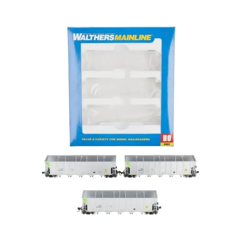 This is a Walthers 910-56865 HO Trinity Industries Leasing RD4 Coal Hopper #1 (3). Coal traffic is big business for the railroads of today, and it’s easy to model with these three-packs of WalthersMainline RD-4 Hoppers! Introduced in the 1990s, the prototypes are equipped with both rotary couplers and rapid-discharge bottom gates for quick unloading at any power plant, but can also be found hauling scrap and other bulk loads. These railroad-ready models feature a detailed body with separately applied door mechanisms, brake gear and interior bracing. Each rides on a heavy die-cast metal underframe for excellent performance, and includes 33 turned metal wheelsets. Two cars are equipped with a Proto MAX(TM) metal knuckle coupler for the outside end, with dummy knuckle couplers on intermediate cars. The perfect starting point for a new unit train or for expanding your current fleet, each set includes three cars in the same scheme with three different numbers, for a total of six cars each. Be sure to check out Cornerstone coalmines, flood loaders and power plant kits to model a full range of operations!