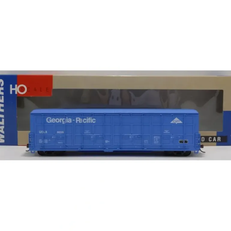 Here is a Walthers 932-7008 HO Scale Georgia Pacific Thrall-Door Boxcar #50225. Features include fully assembled and ready for service, colorful, modern paint scheme and is complete with working knuckle couplers.
