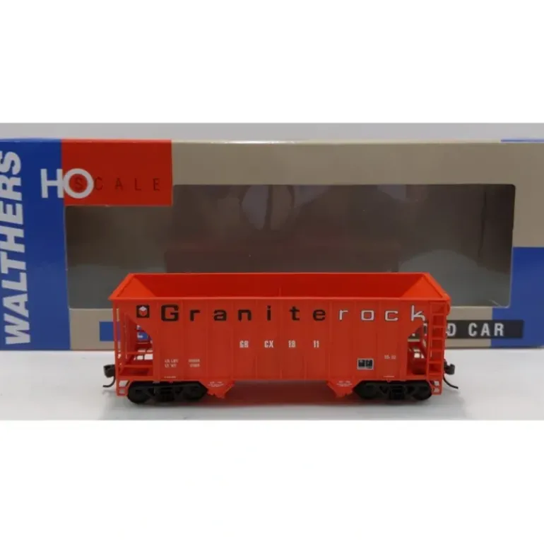 Here is a Walthers 932-7406 HO Granite Rock Greenville 100 Ton Twin Hopper #1811. This car features plastic trucks, operating knuckle couplers, plastic wheels and axles.