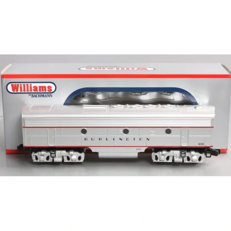 Here is a Williams 20804 CB&Q F7 Diesel Locomotive B-Unit Dummy. This non-powered locomotive features die cast trucks, fixed knuckle couplers, durable ABS plastic shell, and metal 3-rail wheels. This locomotive can navigate O-27 curves.