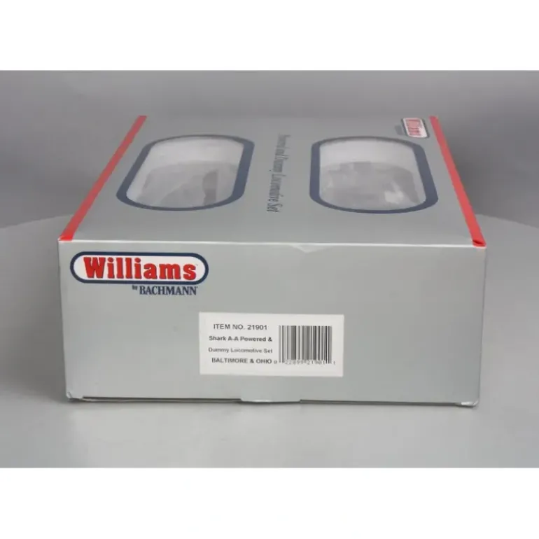 Here is a Williams 21901 Baltimore & Ohio Sharknose Diesel Locomotive AA Set. This set features a Powered and non-powered unit. Both locomotive feature die-cast trucks, metal wheels, and knucke couplers.
