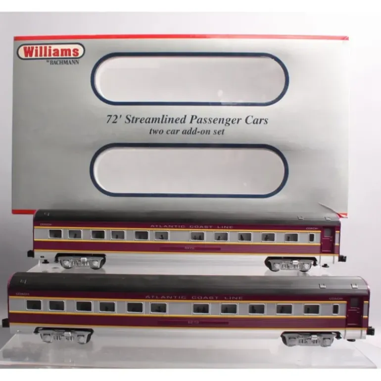 Here is a Williams 43101 O ACL 72′ Streamliners Passenger 2-Car Add-On Set. Features include navigates 0-42 curves, single-car length: 18, durable/lightweight ABS plastic shell, oil impregnated bearings, passenger silhouettes, dual roller pick-ups, operating couplers, needlepoint axles, interior lighting, two-car add on sets include 2 coaches, and they are Lionel compatible.