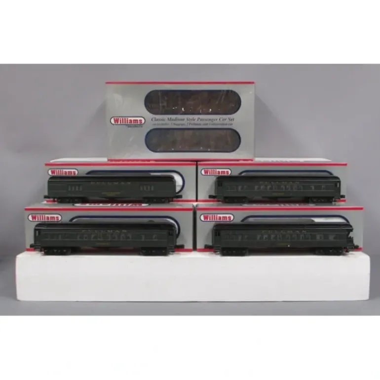 Here is a Williams 43471 Golden Memories 60ft Madison Passenger Car 4-Pack. This set includes: Baggage, (2) Pullmans, and an Observation Car. These feature durable ABS construction, die cast trucks, illuminated interiors, passenger silhouette window strips, operating knuckle couplers, metal 3-rail wheels and axles.