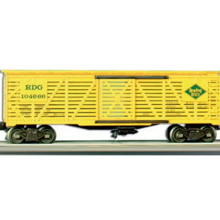 Here is a Williams 47410 Reading Stock Car. This car navigates 027 curves. Features include: car length 10, height is 3.5, durable ABS plastic shell, die-cast trucks, metal wheels, operating couplers, metal floor, door guides, prototypical graphics, plus a brake wheel.