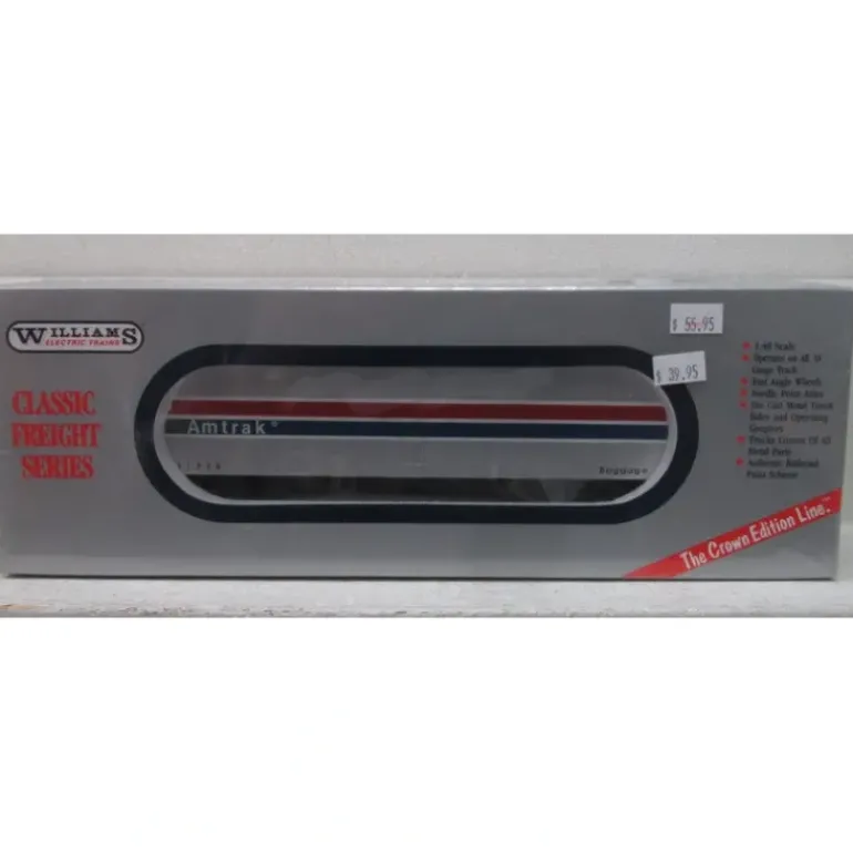 Here is a Williams 85 Amtrak Baggage Car. This car features Fast Angle Wheels, Needle Point Axles, Die-Cast Trucks and Couplers, and Authentic Paint Scheme. Please see my pictures for additional features.