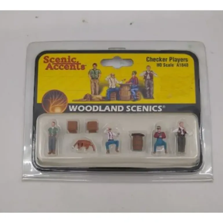 This is a Woodland Scenics A1848 HO Checker Player Figures & Accessories (Set of 8).