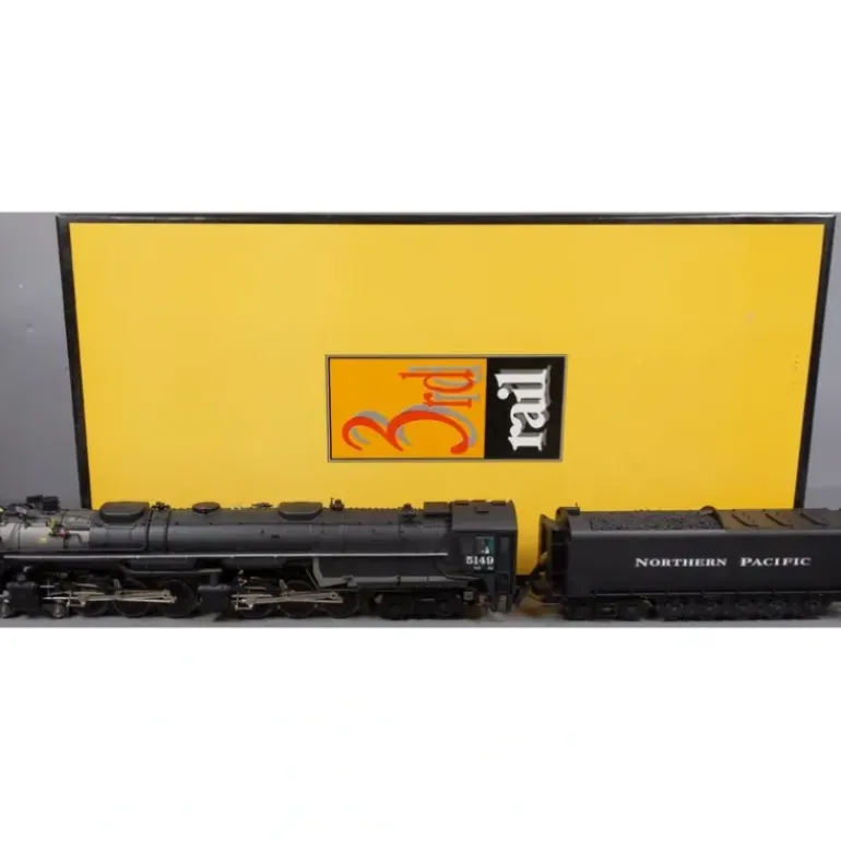 Here is a 3rd Rail 5149 O BRASS Northern Pacific Z-8 BRASS Challenger Steam Loco & Tender. Features include brass construction, brass trucks, knuckle couplers, metal wheels & axles, and a motor.