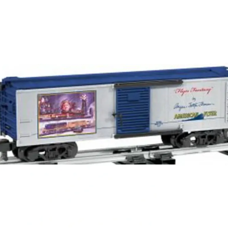 Here is an American Flyer 6-48389 S Angela Trotta Thomas American Flyer Fantasy Boxcar. This car has a metal frame, opening doors, die-cast metal trucks, and operating couplers. It is 8-3/8 long.