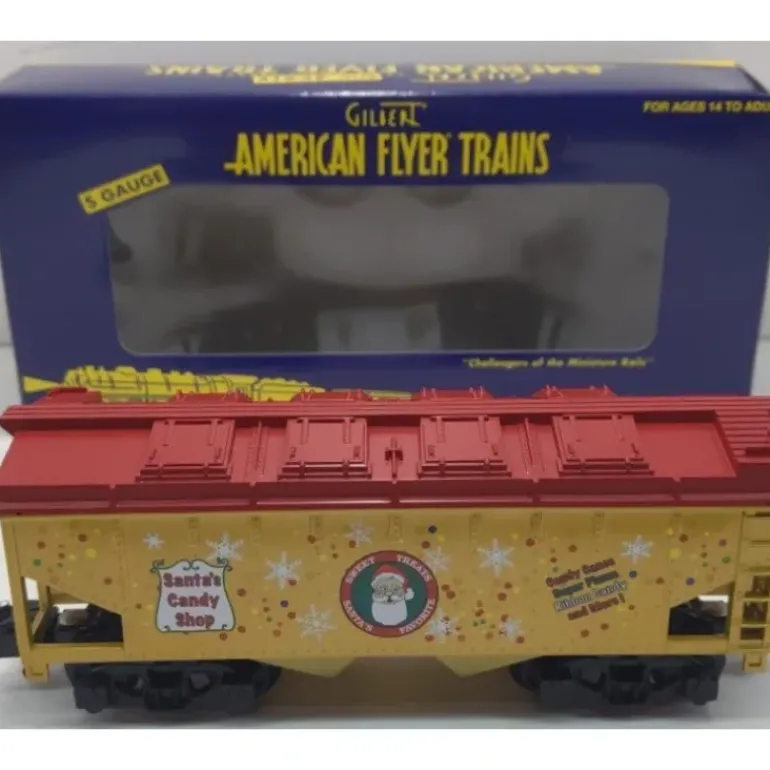This is an American Flyerl 6-48632 American Flyer Christmas 2-Bay Hopper from the Lionel 2009 Christmas Catalog. It features die cast trucks and operating couplers.