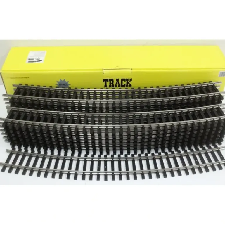 This is a section of Aristo-Craft 20121 USA Style Stainless Steel 11.5 Foot Diameter Curved Track sections. Aristo-Craft track is widely known for its outstanding quality, long-lasting durability, and most of all, affordability. Instead of being hollow, the rail in Aristo-Craft track is solid for strength and performance. Compared the brass rail track, stainless steel rail does not have conductivity issues due to oxidation. Electrical conductivity between the stainless steel rail and the wheels and power pickups of your locomotives and cars is vastly superior to other forms of metal. The Aristo-Craft Screw/Rail Joiner System is a pride of Aristo-Craft design. It provides terrific conductivity where normally conductivity is a problem the junction. This means there is no need for messy conductive greases, soldering between joints, or rail clamps to get electrical performance.